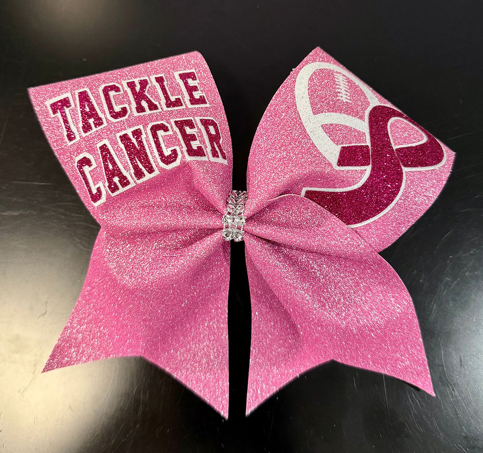 Bows by Nina started at my kitchen table when my youngest daughter was a Middle School Cheerleader. My daughter asked if I could make her a bow for practice and it took off from there! Once the other cheerleaders saw her bow, they all wanted one. Shortly thereafter the Director of the cheer program gave me an opportunity to make Pink Out bows. They were a huge hit! I was then approached by the high school cheer coach who asked if I could make bows for Homecoming. I began attending high school football games with a table and bows. I was invited to be a vendor at a Color Guard competition and I was soon referred to as the “Bow Lady”. Getting into the cheer competitions as a vendor was the icing on the cake! That is when Bows by Nina became a household name in the cheer community.